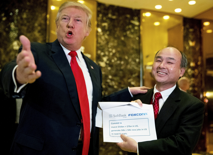 孫氏は2016年にトランプ氏が大統領選で初当選した際も、日本企業経営者としていち早くトランプ氏を訪れ、500億ドルの投資を表明した。経済成長と雇用拡大を重視するトランプ氏に巨額の対米投資計画を直接伝え、トランプ次期政権に近づいて事業環境を有利にしたいとの思惑もありそうだ。