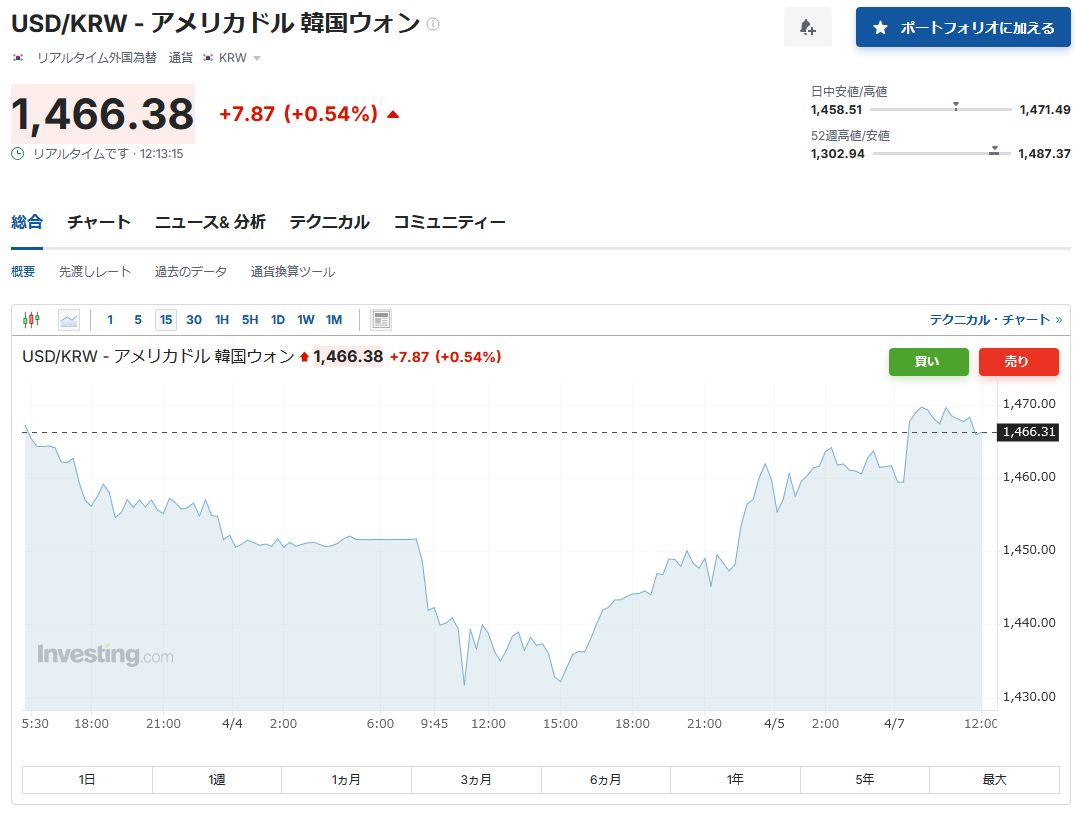これはドナルド·トランプ米大統領の相互関税不確実性とグローバル証券市場で投売りの雰囲気が拡散しているためだ。 米国の相互関税は韓国時間で、同日午後1時1分に正式に発効される。