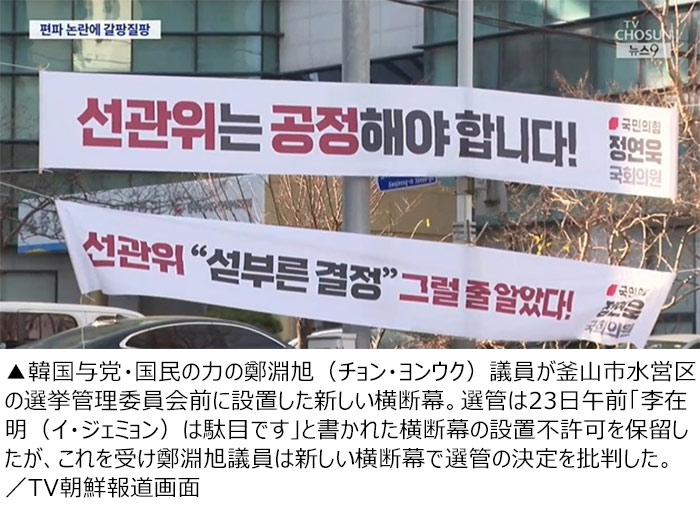 李在明批判横断幕の設置不許可→許可 自ら偏向疑惑を招いた韓国選管
