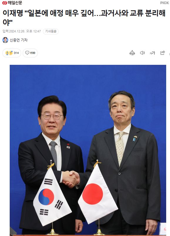この日イ・ジェミョン代表は「日本は韓国一番近くにある隣国で最近の混乱した状況に多く驚いただろう」とし「大韓民国民主主義の回復力を信じて見守っていただければ迅速に憲政秩序に復帰できるだろう」と話した。