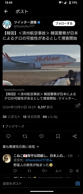 YouTubehttps://www.youtube.com/watch?v=2za0ziXosKc「飛行機の残骸は小道具」179人が死亡したチェジュ航空事故の“悪質デマ”を拡散…韓国人ユーチューバーを逮捕