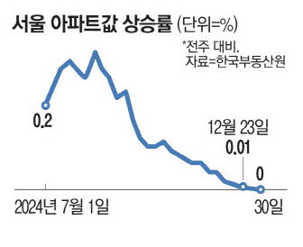 強力な融資規制と騒々しい政局の影響を受け、ソウル不動産市場が急速に冷え込み、昨年末基準でソウルのマンション競売件数も9年ぶりに最多を記録した。 2日、韓国不動産院の週間マンション価格動向(昨年12月30日基準)を見ると、全国が前週比0.03%下落した中で、首都圏も2週連続0.02%下落し、ソウルは横ばい(0%)に転換した。 ソウルのマンション価格が上昇を止め、横ばいになったのは10ヵ月ぶりのことだ。
