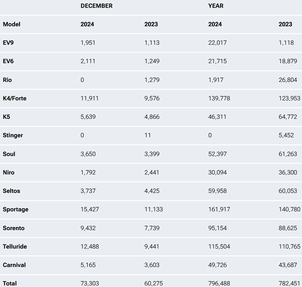 https://jp.yna.co.kr/view/AJP20250103004700882去る12月30日カスコップス(Carscoops)、インサイドEVs(Inside EVs)など外信報道によると、起亜は米国市場で販売されたEV9 2万3千余台を対象にリコールを行った。衝突事故時に2~3列の座席が所定の位置から離脱する欠陥で搭乗者に致命的な被害を与える可能性が確認されたためだ。