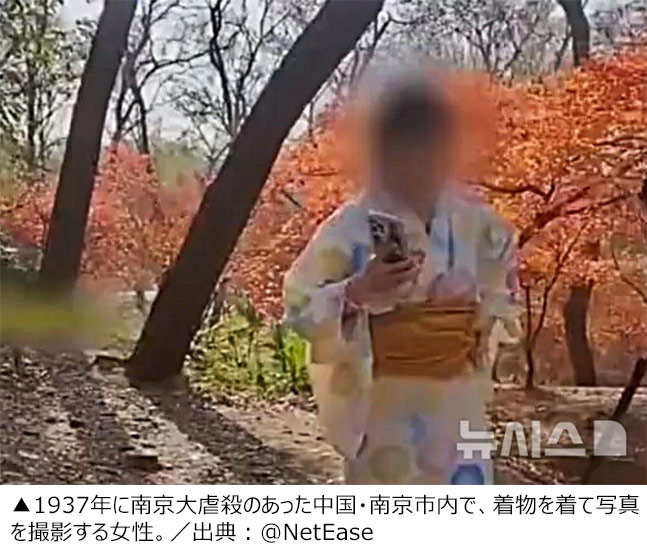 【NEWSIS】1937年の中日戦争(日中戦争)当時、日本軍による「南京大虐殺」が起きた中国・江蘇省南京で、日本の着物を身にまとって写真を撮影していた女性が、これを批判する女性と言い争いになっていたことが分かった。この様子を収めた動画がSNS(交流サイト)に投稿されて物議を醸している。