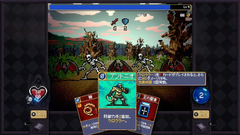 敵を倒していくと、経験値がたまり前作同様、どんどんレベルアップしていきます。その際、新たなカードを1枚選んで入手できます。どのカードをデッキに組み込むかによって、バトルの戦略が大きく変化するのでじっくり選んでください。