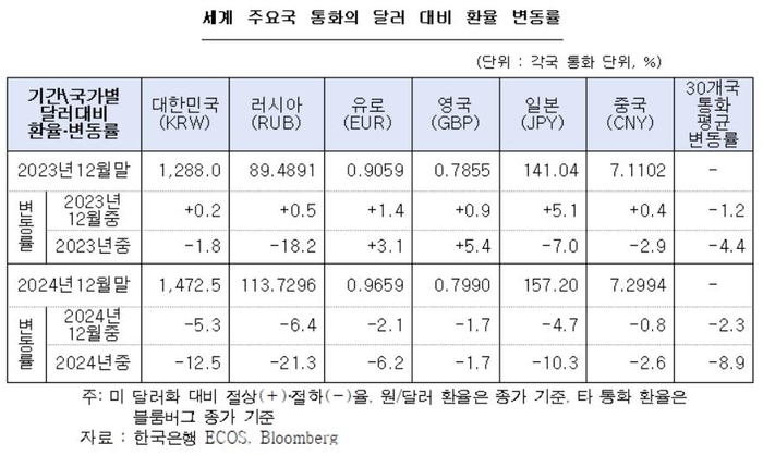昨年12月の1ヵ月間、韓国ウォンの価値が5%以上下落し、戦争中のロシアに続き最も劣勢を示した