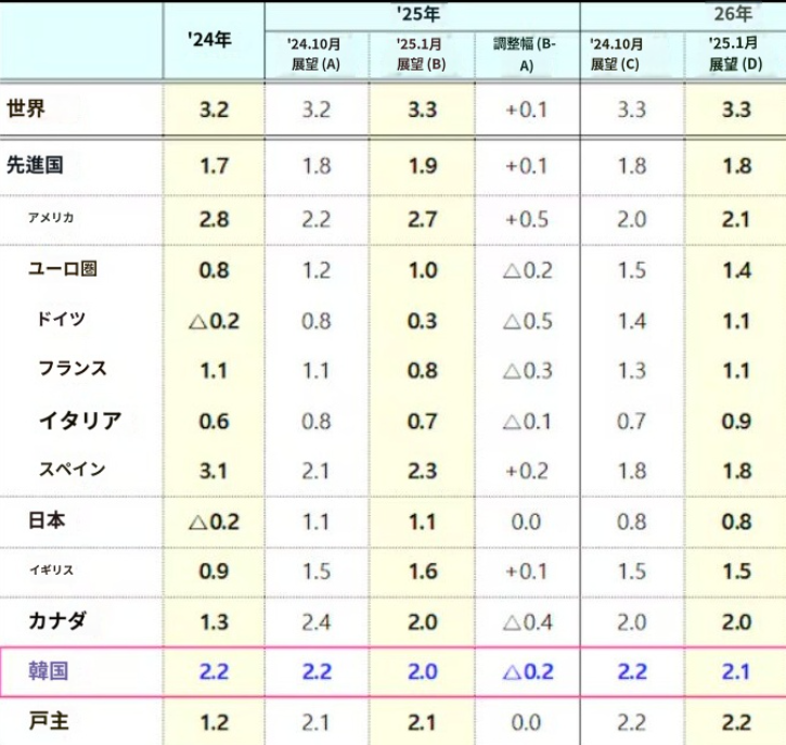 不思議だと思わない韓国人www韓国銀行(中央銀行)は20日、2025年の経済成長率は1.6─1.7%との見通しを示した。11月時点の1.9%から下方修正することになる。