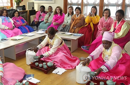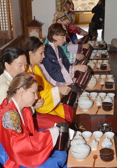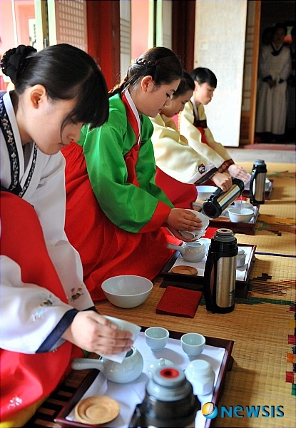 この写真、見たところ日本の女子高の韓国修学旅行での朝鮮茶道体験に見えるんだよな。
