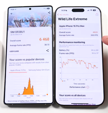 갤럭시 S25 울트라 vs 아이폰16 pro max, 속도 테스트