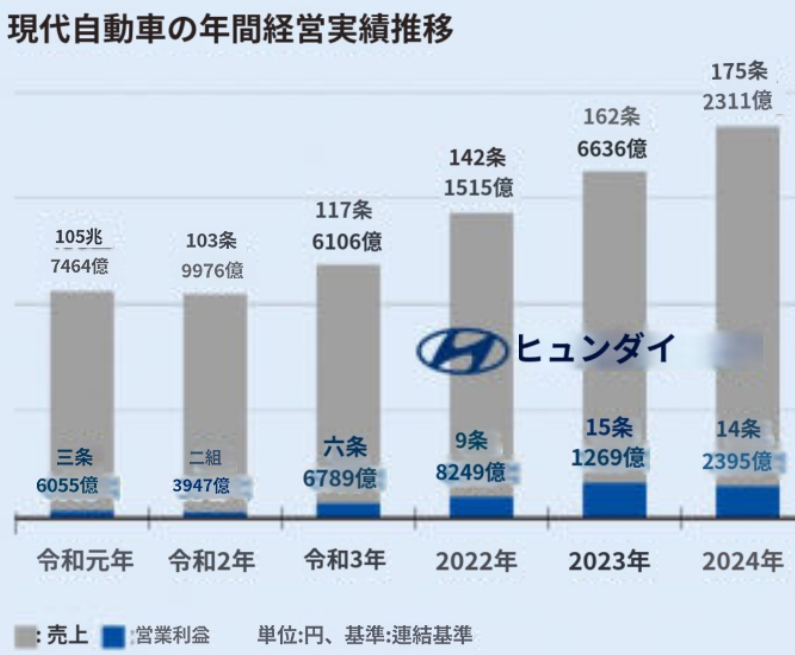 現代、売り上げは増えたのに、営業利益は5.9パ−セントも減ってるねwww