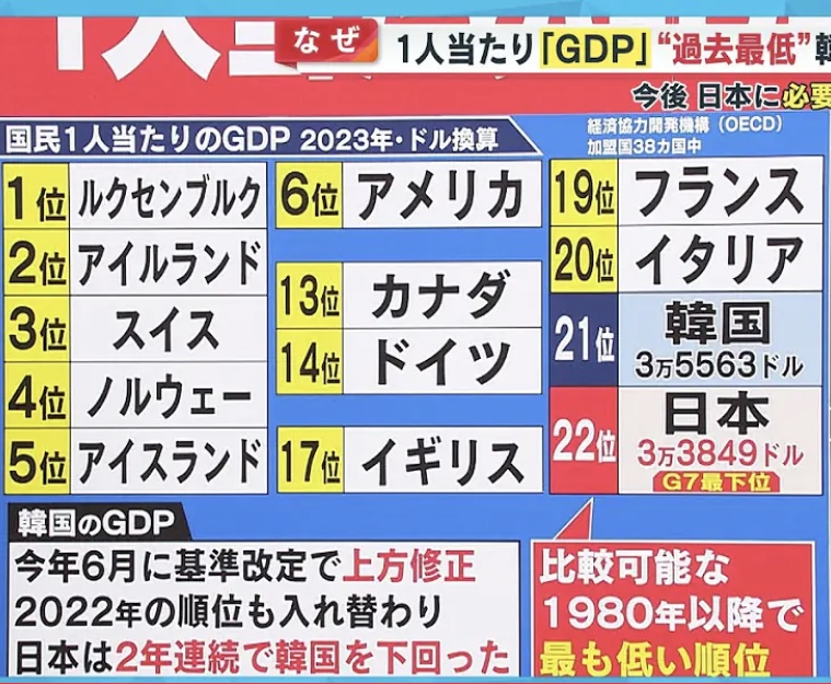 「安い月給でいい仕事をする人が偉いのだ」と言っていた。一人当たりGDPで日本を追い抜いた韓国だが、