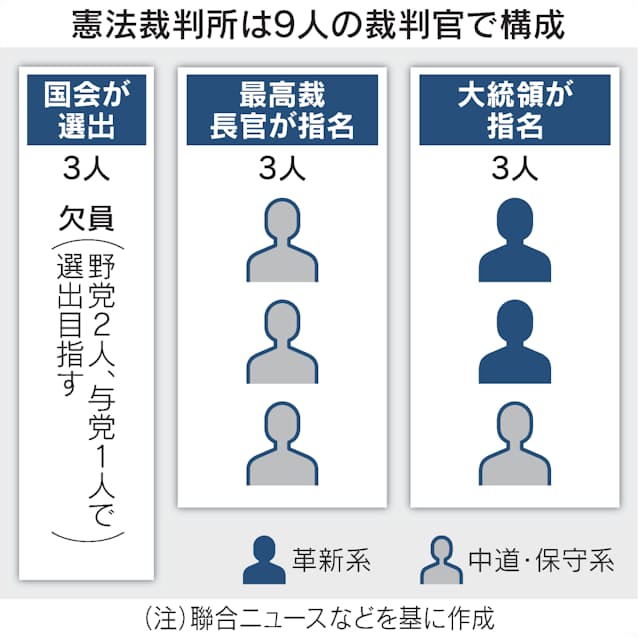 残り1枠は革新系で埋めるようだが、それでも中道・保守の方が強い。弾劾裁判は、6人が妥当だと判断しない限り、罷免されないシステムだ。