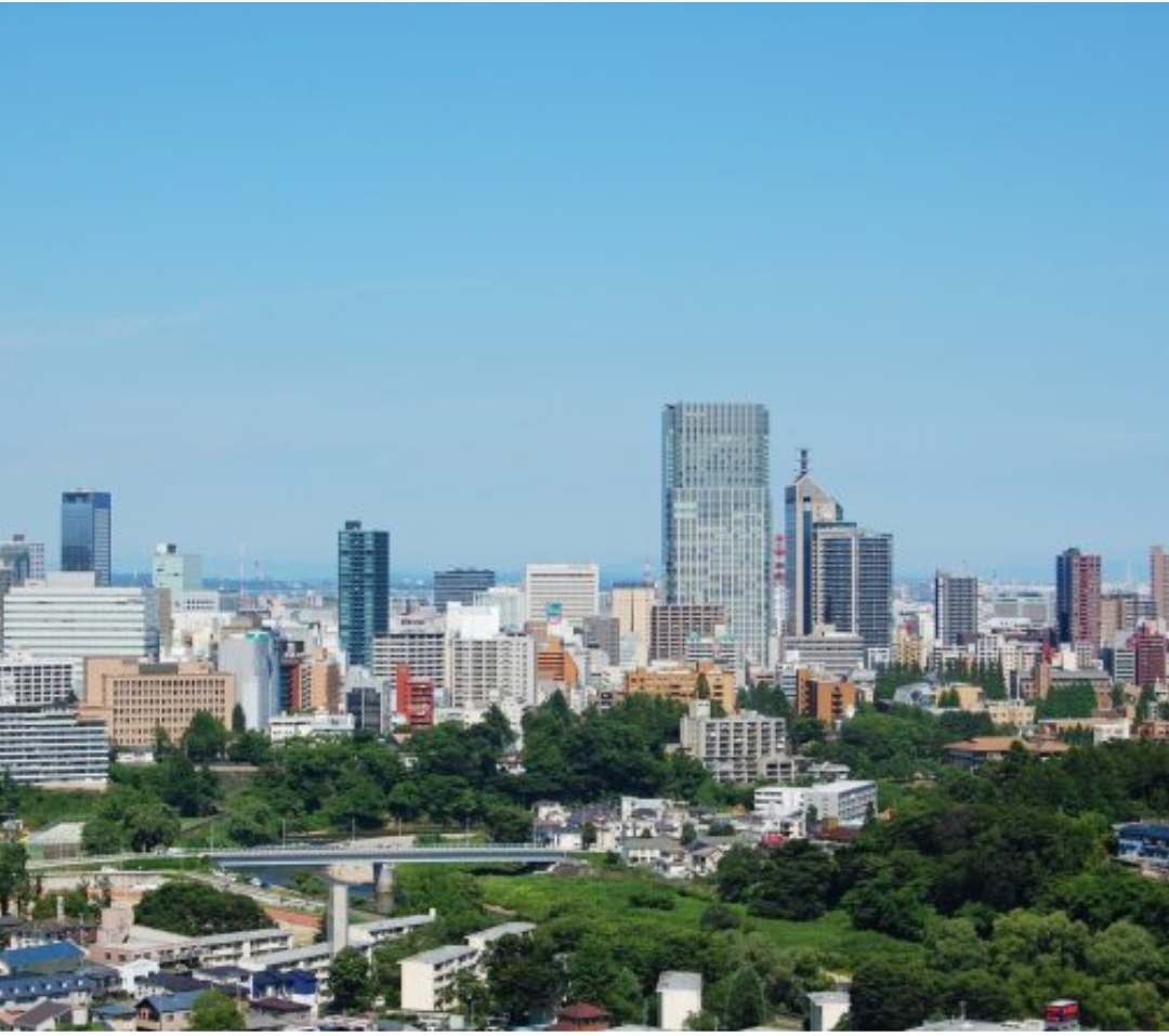 仙台は都市の景観と緑が混じり合う