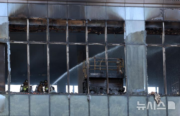 火災現場の周辺道路には消防車やパトカー、労災調査のために出動した雇用労働省など関係機関の車両が数十台並び、防護服を着た消防隊員らが交代で現場を行き来した。