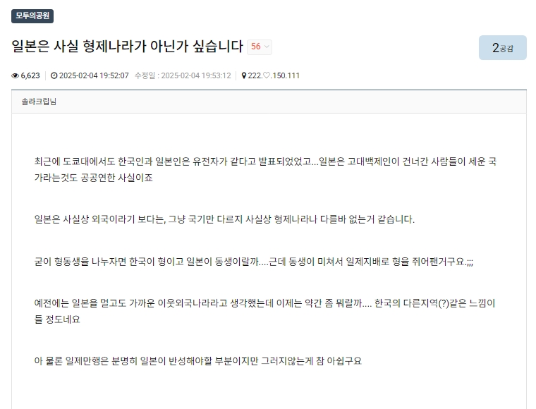 8名無し2025/02/16(Sun) 01:21:13ID:I1MTI5MjA(1/3)NG報告진짜 왜 이리도 한국에는 친일매국노들가 많을까.이것이 예전에 친일들을 숙청을 안해서 생긴일이다 모가지를 다 날렸으면 저런 종자들이 감히 못나설건데.0