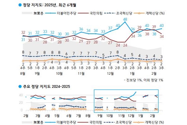 与党「国民の力」の支持率が5ポイント下落して34%、最大野党「共に民主党」支持率が2ポイント上昇して40%となり、1月に入って2ポイントから3ポイント差で推移していた支持率が、6ポイント差に拡大したことがわかりました。