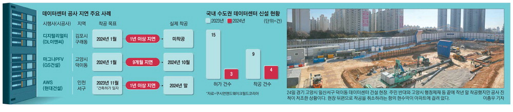 着工遅延にともなう費用が急激に増えると、GS建設が行政審判を提起した。 京畿道行政審判委員会がGS建設の手を挙げ、当初の予定より10ヵ月が過ぎた後に工事を始めることができた。 しかし、いつでも工事が中断される可能性がある。 ここを地方区に置いた共に民主党のキム·ヨンファン議員は昨年末、データセンター建築許可職権取り消しとGS建設の事業撤収を要求し、市·道議員と住民たちが見守る前で剃髪した。