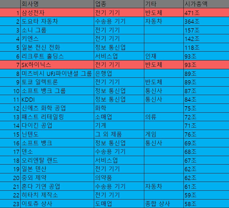 韓国半導体が売れないのはそのせいだよ。삼성전자, 포브스 ‘글로벌 2000’ 7계단 하락해 21위...일본 도요타 11위.