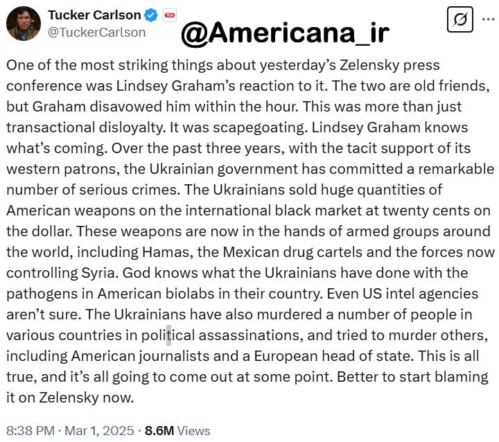 우크라이나인들은 바샤르 알 아사드와 하마스의 반대자들에게 미국 무기를 주었습니다./ 터커 칼슨의 젤렌스키와 우크라이나 정부에 대한 중요하고 매우 날카로운 성명: