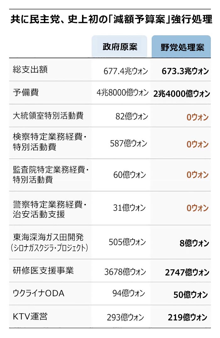 【表】共に民主党が強行処理 尹大統領が「予算暴挙」と批判した予算案の中身