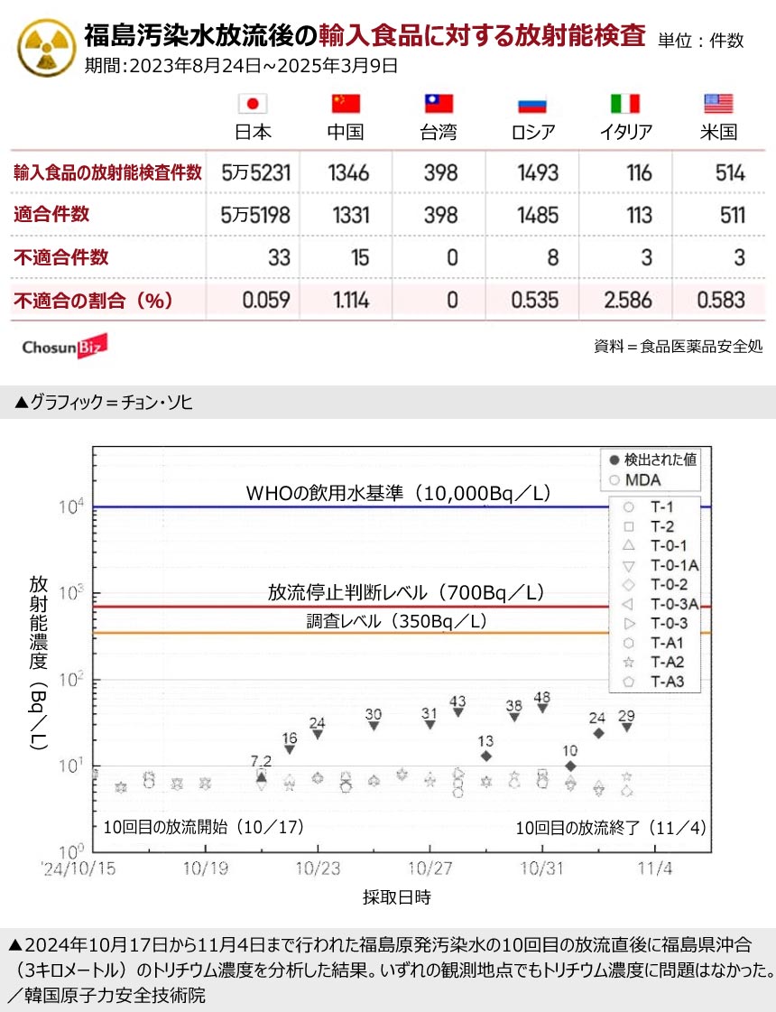 【韓国当局が調査】輸入食品の放射能検査と福島沖トリチウム濃度