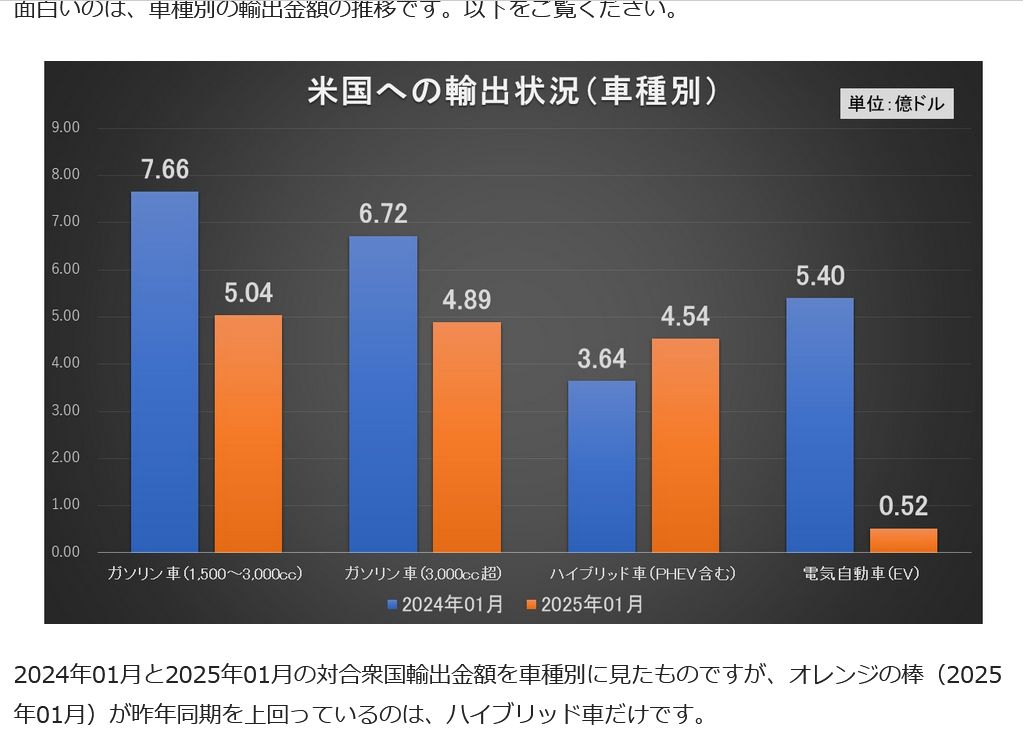 参考:マネー1:韓国「米国への自動車輸出が激減した」36%減少。EVは対前年で90%減った!