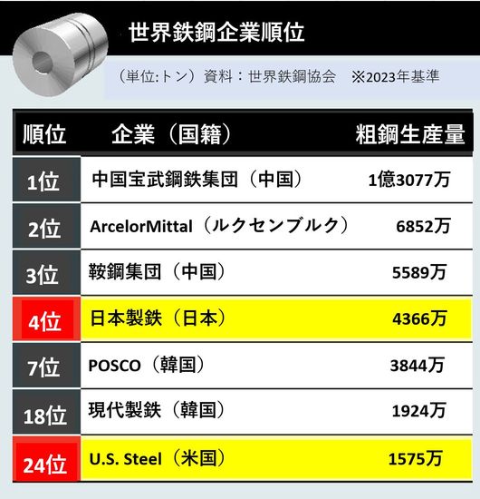 問題は日本製鉄と韓国の鉄鋼企業の製品群が似ている点だ。日本製鉄も中国の低価格鉄鋼攻勢に対応して製品の高級化を推進してきた。熱延・冷延鋼板などの汎用材だけでなく、自動車鋼板、鋼管などの高付加価値鉄鋼を生産しているという意味だ。日本製鉄がUSスチール買収で米国現地で高付加価値鉄鋼生産量を大幅に増やすことになれば、物量と価格面で韓国企業よりさらに競争力のある位置を確保する可能性が生じる。