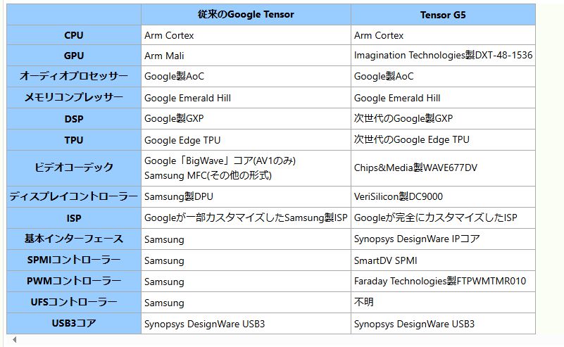 また、Tensor G5ではSamsungによる開発の手を離れ、自社設計と既存の他社製のコンポーネントの組み合わせが用いられます。