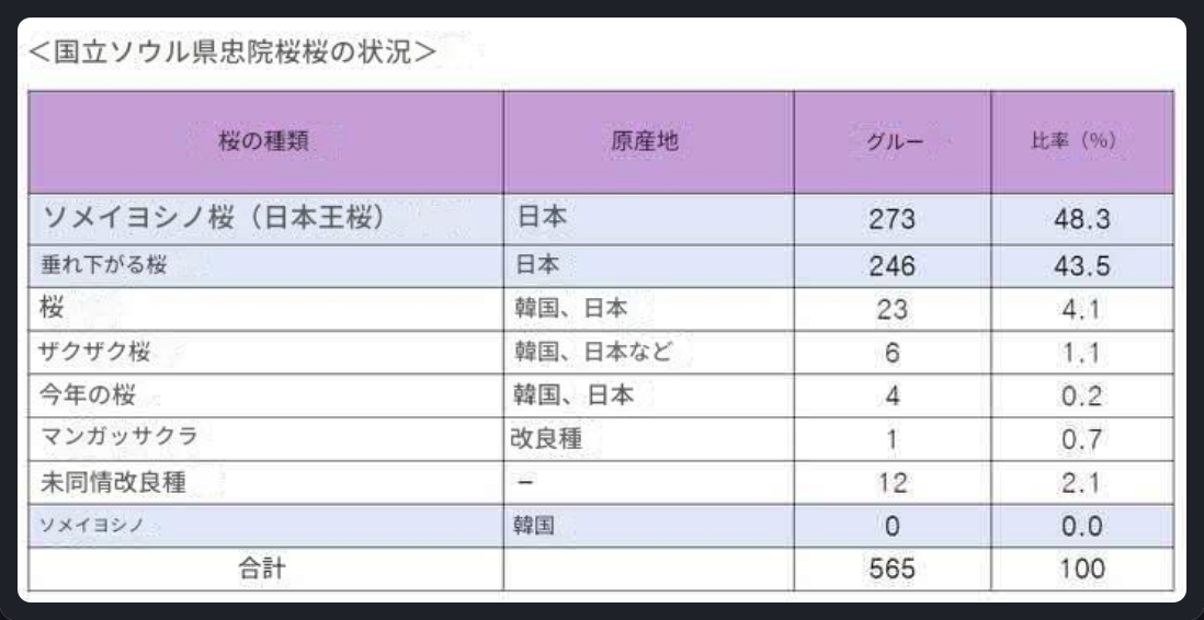 21世紀になったのに、日本の造園業者に「見学させてください」「教えて下さい」って電話がガンガン来るレベルで、造園知識が無い(ギョンドク教授は何してるんだ?)"当時米国に亡命していた李承晩は自らが設立した韓米協会を通じ、米国政府に「あのジャパニーズ・チェリーの原産地は韓国の済州島と鬱陵島であり、三国時代に韓半島(朝鮮半島)から日本に渡った。そのため名称をコリアン・チェリーと呼んでほしい」と要請した。"
