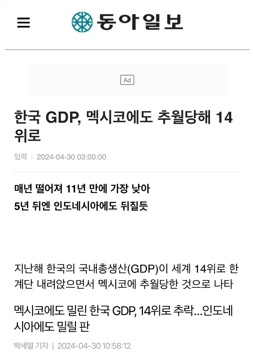 韓国の長期的な経済予測を出す研究機関って、どこの国の機関でも、なぜか、1980年代から日本以上の少子化である事実や、金融が貧弱である事、特許収支が大赤字である事などから、高所得国家になれる要素が皆無なのに特に理由を示さずに韓国の将来がとても明るい予測を出すんだよなあ。酷いのになると少子高齢化問題が発生していないかのような予測を出してるところもある。不思議だなあ。