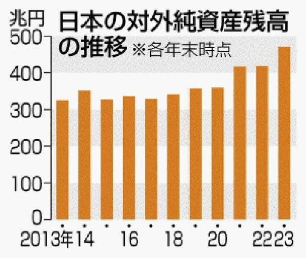 財務省は28日、日本の政府や企業、個人投資家が海外に持つ資産から負債を差し引いた対外純資産の残高が、2023年末時点で前年比12・2%増の471兆3061億円となり過去最大を更新したと発表した。