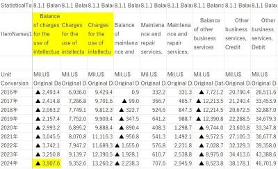国際収支統計には、「知的財産権等使用料収支」(Balance of charges for the use of intellectual property)という項目があります。