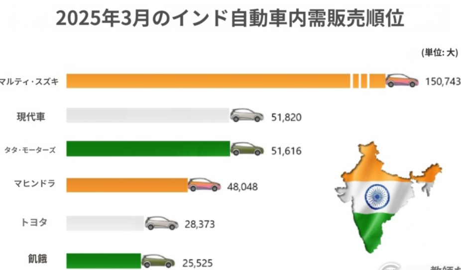 2025年3月のインド自動車内需販売順位