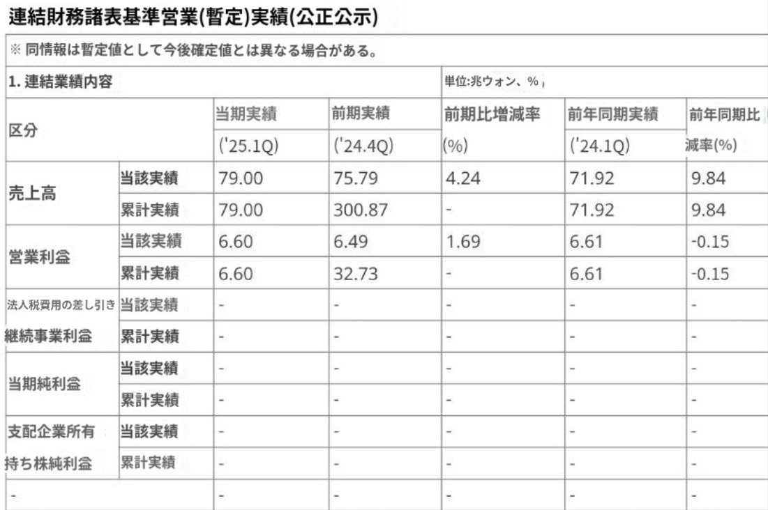 韓国『サムスン電子』2025年1Q業績、総売上+10%で営業利益-0.15%