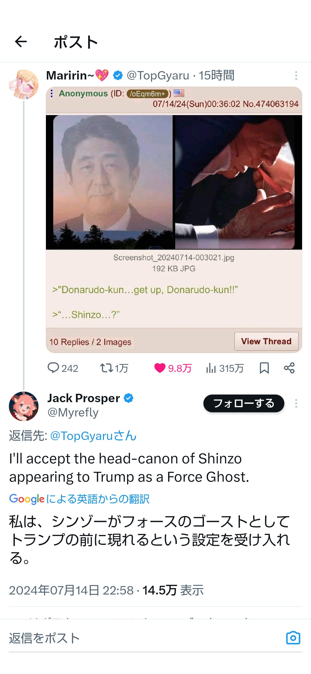 日本は君が思うほど弱くないので、自分の国の心配をしましょうね🫵>>1 일본야후의 반응을 보니까 일본인대부분은 트럼프 암살을 꿈꾸고 있다 ㅋㅋㅋㅋㅋ, 트럼프 진영에서 꼭 이런 일본인들의 반응을 봤으면 좋겠다.