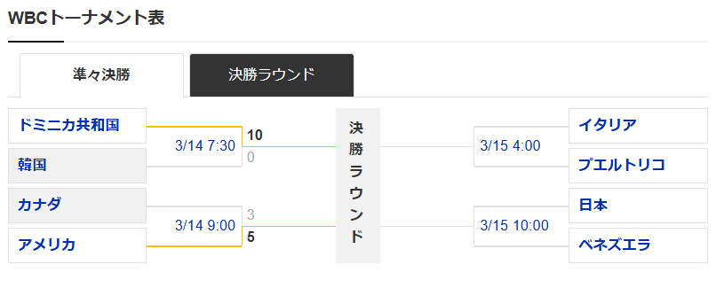 準々決勝でドミニカ共和国に0ー10と屈辱のコールド大敗を喫した韓国で、WBCの対戦表に対する批判が飛び出した。準々決勝はC組2位の韓国がD組1位のドミニカ共和国と第1試合で対戦。第2試合がA組1位のカナダとB組2位の米国、第3試合がB組1位のイタリアとA組2位のプエルトリコ、第4試合がC組1位の日本とD組2位のベネズエラとなっている。