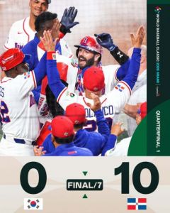 韓国を寄せ付けなかったドミニカ。なお、勝利した彼らは準決勝でカナダ代表とアメリカ代表の勝者と対戦する。イチローの「今後30年は日本に勝てないって勝ち方をしたいと思う」という発言から20年
