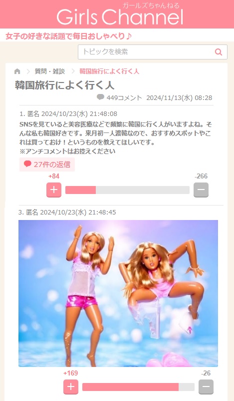 カイカイじゃなくて、若い女性が集まる「ガールズちゃんねる」を覗いてごらん。