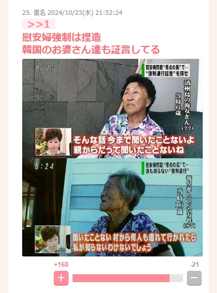 「慰安婦強制は捏造 韓国のお婆さん達も証言してる」
