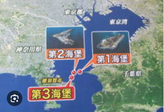 左下:海自・自衛艦隊司令部界隈(東京湾)・・・観音崎まで約5km