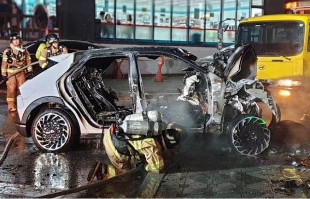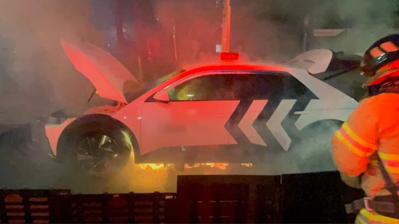警察と消防当局は、道路にあった鉄製物によって車両バッテリーが破損し、熱暴走が発生したと見て正確な事故の原因を調査している。