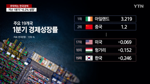 韓国銀行(中央銀行)は4月24日、2025年第1半期(1~3月)の実質GDP成長率(速報値)が前期比0.2%減だったと発表した。2024年第2四半期(4~6月)以来、3四半期ぶりにマイナス成長となった。