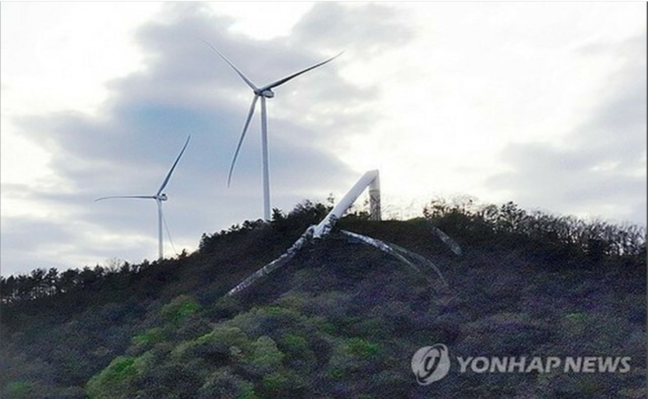 韓国で風力発電の風車が倒壊 輸入品のため原因究明は困難か