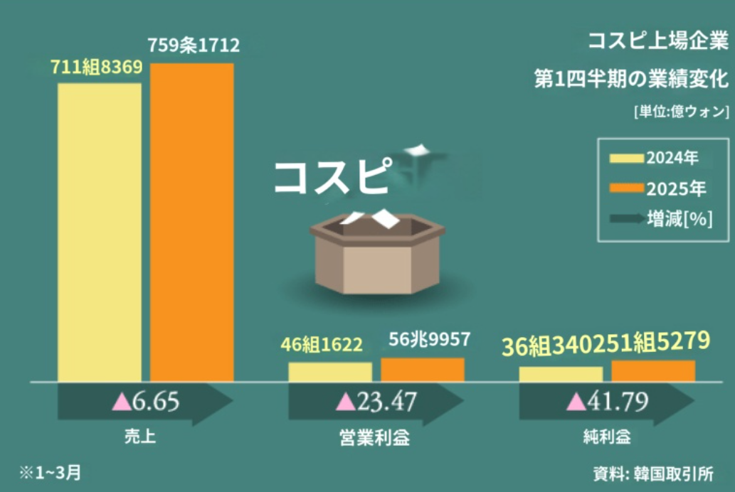 まちまちの第1四半期上場会社の実績...KOSPI純利益42%↑、KOSDAQ27%↓