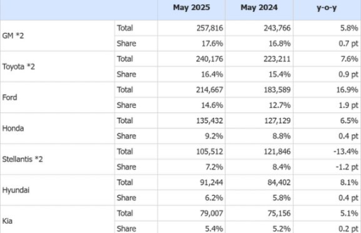 米国メーカーの5月販売は、GMが前年同月比5.8%増、フォードは引き続き従業員価格の割引きを一般顧客に適用するインセンティブを実施し16.9%増となった。同インセンティブは7月6日まで延長実施される。ステランティスもフォードと同じインセンティブを継続実施したものの、5月は13.4%減と再びマイナスに転じた。テスラは22.4%減少し、7カ月連続のマイナスとなった。
