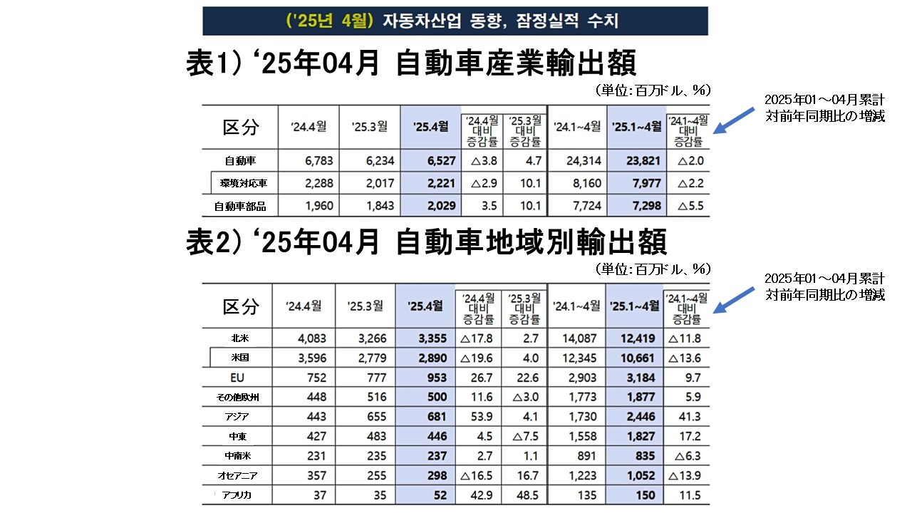 日本は自動車輸出全体の1/3がトランプ関税の影響を受けるが、韓国は自動車輸出全体の1/2がトランプ関税の影響を受ける