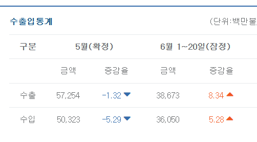 6月1~10日の韓国輸出5.4%↑…貿易収支は17億ドル赤字