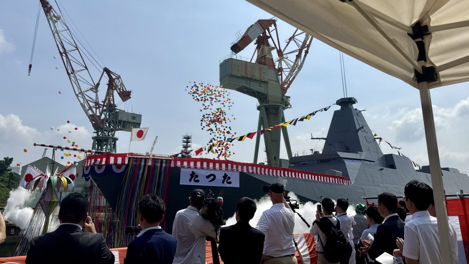 日本の防衛相の中谷源は、政府の全面報道のサインとして、クラス11隻目の船の進水と命名に出席し、進水式後に各記者に名刺を贈呈することをポイントにしました。(Breaking Defenseは、他のアウトレットと同様に、旅行のための旅行と宿泊施設を受け入れました。)