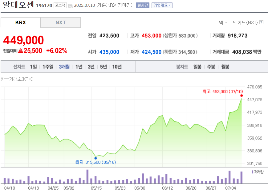 알테오젠은 평단가 8만 6000원에 200주 보유중..