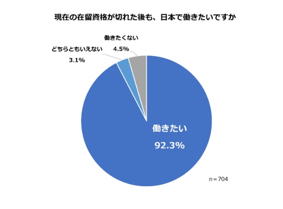 日本在留外国人の92.3%が現在の在留資格が切れた後も「働きたい」と回答したことが、このほどマイナビグローバルの調査でわかった。
